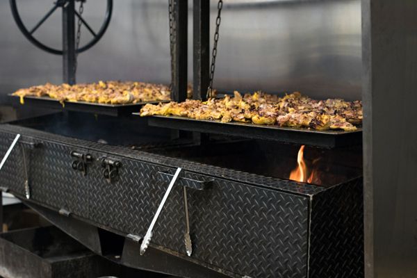 Chicken marinated 24hrs in orange juice and spices, grilled on a mesquite fire. Topped with cabbage on a homemade flour tortilla