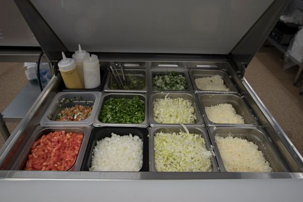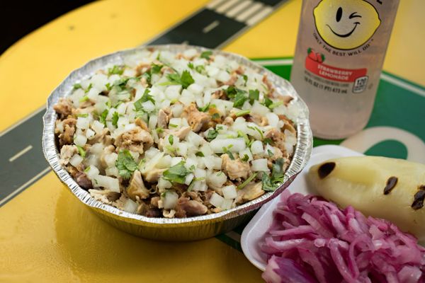 Comes with Spanish rice, whole pinto beans, cilantro onions and shredded monterey jack cheese