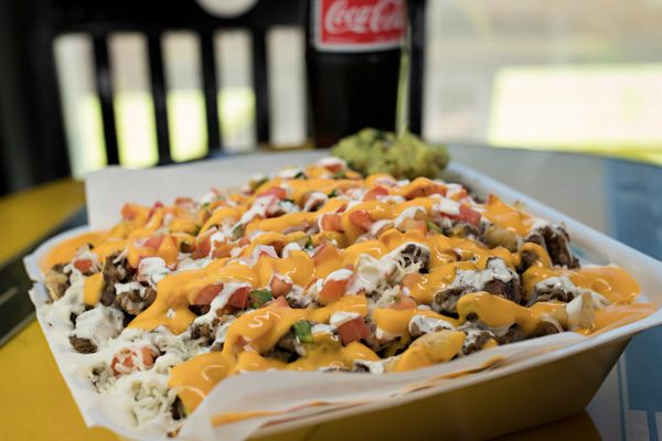 Your choice of meat on top of chips, and whole pinto beans. Topped with monterey jack and nacho cheese, pico de gallo, guacamole and Mexican sour cream
